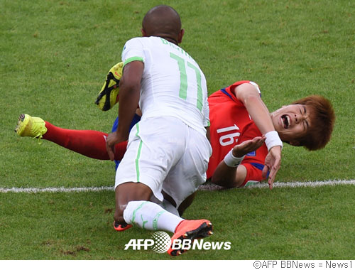 앞서 전반전에는 세 골이나 허용했다. 전반 26분 알제리의 공격수 이슬람 슬리마니(26·스포르팅 리스본)에게 선제골을 내줬다. 슬리마니는 역습 상황에서 2선으로부터 한 번에 넘겨받은 공을 우리 골문 앞까지 몰고 질주한 뒤 낮게 깔아 때린 슛으로 골망을 흔들었다.