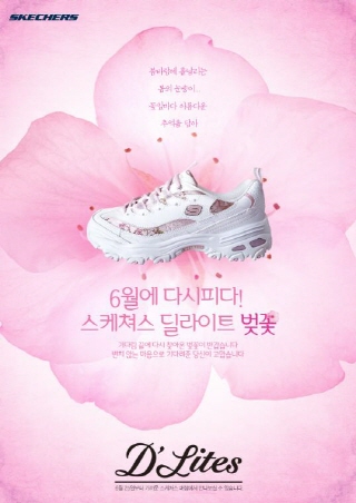 스케쳐스 딜라이트 벚꽃(D’Lites 벚꽃)은 올봄 온라인 상에서 폭발적인 반응을 일으키며 관심을 모았던 잇-아이템(it-item)이다. 봄날 벚꽃을 연상시키는 하늘거리는 플라워 프린트와 사랑스러운 핑크컬러의 딜라이트 벚꽃은 팬들의 입소문을 타기 시작하면서 큰 인기를 끌었다. 전국 스케쳐스 매장 뿐만 아니라 패션커뮤니티와 카페, 블로그 등에서도 제품에 대한 문의가 빗발쳤으나, 부족한 수량으로 많은 팬들에게 아쉬움을 남겼던 화제의 운동화다.
