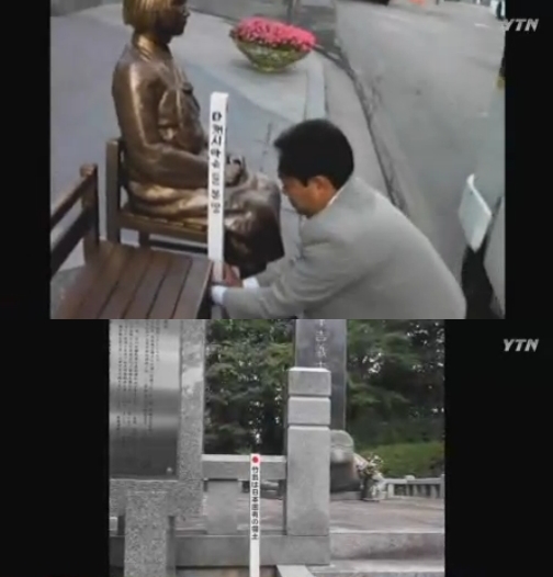 스즈키씨는 2012년 6월 서울 주한일본대사관 앞에 설치된 위안부 소녀상에 ‘다케시마는 일본 영토’라고 적은 말뚝을 묶어 위안부 할머니들의 명예를 훼손한 혐의를 받고 있다. 또 일본 가나가와시에 있는 윤봉길 의사 순국기념비에도 말뚝테러를 자행했고, 윤 의사를 ‘테러리스트’라고 지칭하는 등 고인의 명예를 훼손한 혐의도 받고 있다.