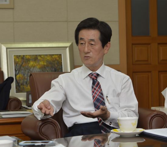 이영우 경북도교육감이 2일 도교육청 집무실에서 경북교육의 발전 방안에 대해 말하고 있다.