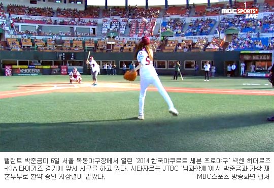 박준금과 지상렬은 6일 오후 서울 목동구장에서 열린 2014 한국야쿠르트 세븐 프로야구 넥센 히어로즈와 KIA 타이거즈의 경기에 각각 시구와 시타를 했다.