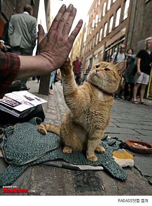 밥과 제임스가 하이파이브 하는 사진을 보노라니, 마음이 훈훈해집니다. 동화 같은 일이 현실에서도 일어나는군요. 둘이 앞으로도 오랫동안 행복하길 기원합니다. 저도 런던에서 밥과 하이파이브 한 번 해보고 싶네요.