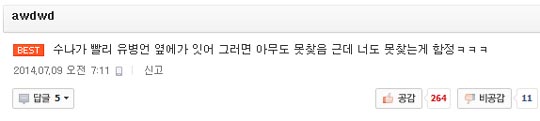 수많은 댓글 중 최고 인기를 모은 댓글도 있는데요.