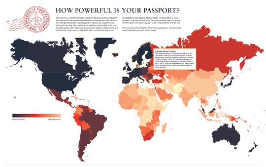 사실 여권에는 우리가 좀처럼 알지 못했던 여러 가지 지정학적 의미가 담겨 있습니다. 예를 들면 여권만 들고 우리가 갈 수 있는 나라는 그만큼 우리 한국과 정치, 경제, 문화적으로 가깝다는 뜻이니까요. 또 두 나라간 협의를 통해 비자를 없앴다면 그만큼 우리나라 외교력을 증명하는 수단이기도 하겠군요. 혹은 그만큼 그 나라의 개방성을 드러내는 수치일 수도 있겠습니다.