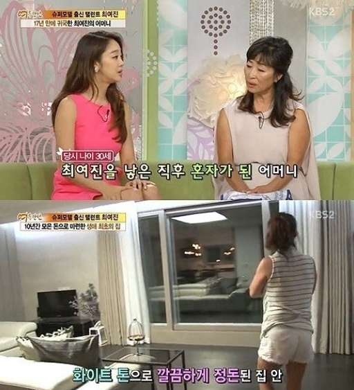 이날 방송에서는 최여진이 엄마를 위해 10년간 모은 돈으로 마련한 경기도 양평군에 있는 집이 공개됐다. 집안 곳곳에서 허리와 무릎이 좋지 않은 엄마를 위한 배려가 숨어있었다. 효율적인 동선을 고려해 주방과 침실 등을 꾸몄다.
