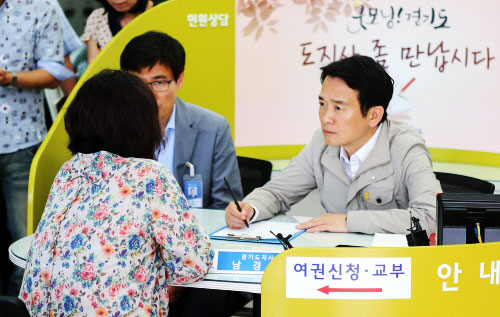 경기도는 남 지사가 지난 11일 오전 도청 언제나민원실에서 ‘굿모닝! 경기도, 도지사 좀 만납시다’를 주제로 첫 민원 상담을 진행했다고 14일 밝혔다. 민선 6기 도정운영 방침 중 매주 금요일 도민과 소통에 나서겠다는 남 지사의 의사에 따른 것이었다.