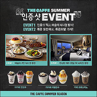여름시즌메뉴를 즐기고 인증샷과 함께 후기를 더카페 홈페이지(www.thecaffe.co.kr)에 올리면 매일 1명을 추첨해 애슐리 2인 식사권이 경품으로 주어지는 데일리 이벤트를 진행한다. 데일리 이벤트는 매주 월요일 더카페 홈페이지를 통해 당첨자를 확인할 수 있다.