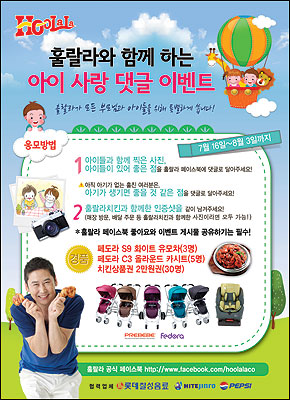 참여방법은 오늘(16일)부터 다음달 3일까지 훌랄라 공식 페이스북(www.facebook.com/hoolalaco)에 부모와 아이가 함께 한 사진과 아이가 있어 좋은 점, 아직 아기가 없는 참여자의 경우 아이가 있으면 좋을 것 같은 점을 훌랄라 치킨 인증샷과 함께 덧글로 올리고 ‘페이지 좋아요’를 누르면 된다.
