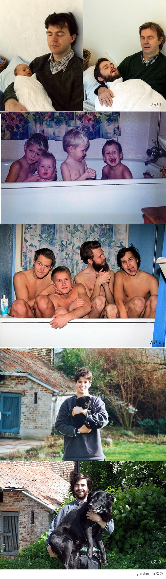 해외 사진 사이트에서 종종 유행이 되는 사진 모음이 있습니다. 오래전 찍은 가족사진을 수 십 년이 지난 뒤 다시 똑 같은 장소에서 똑 같은 포즈로 찍는 거죠. 함께 보시죠.