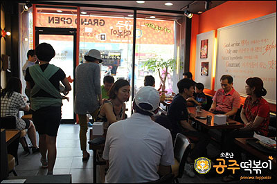 경대병원점은 조리시설이 매장 안쪽으로 들어가 있는 카페형 매장으로 43㎡의 그리 넓은 공간은 아니지만 소문난공주떡볶이의 심벌컬러인 블랙과 오렌지를 사용한 인테리어로 세련되면서도 편안한 분위기를 연출했다.