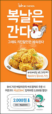 이번 이벤트는 배달 전문 애플리케이션인 ‘배달의 민족’에서 bhc 치킨을 주문하고 애플리케이션 내에서 바로 결제하면 2000원을 할인해 준다.
