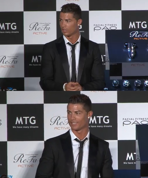 호날두는 22일 일본 미용용품업체인 MTG의 신제품 프로모션 행사에 모습을 드러냈습니다. 그가 이 제품의 광고모델이거든요. 맨체스터 유나이티드(맨유) 소속이던 시절 아시아투어 차 방문한 적은 있었지만 홀로 일본을 찾은 건 처음이라고 합니다. 호날두는 기분 좋게 행사에 참석했죠.