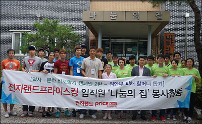전자랜드프라이스킹의 임직원으로 구성된 ‘전자랜드 사랑나눔 봉사단’이 지난 23일 위안부 할머니들의 쉼터인 ‘나눔의 집’을 찾아 봉사활동을 실시했다.