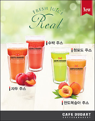 카페 두다트는 잘 익은 국내산 자두와 천도복숭아, 수박, 청포도를 듬뿍 넣고 적당한 당도를 조절해 얼음과 함께 갈아 새콤달콤한 맛과 건강을 함께 누릴 수 있는 생과일 주스 4종을 출시했다. 카페 두다트 여름 신메뉴는 싱싱한 제철 과일을 사용해 과일 본연의 맛을 느낄 수 있도록 개발돼 여름철 수분 및 영양 보충에 도움을 준다.