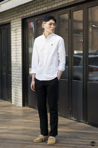 남자들의 패션에서도 빠질 수 없는 것이 바로 화이트이다. 특히 화이트 셔츠는 기본 아이템으로 청바지를 비롯해 면바지, 반바지 등 다양한 아이템과 매치가 자유로워 남녀 구분 없이 사랑받고 있다. 깨끗한 화이트 셔츠는 남자를 보다 지적이고 부드러운 이미지로 만들어 많은 여성들에게 로망인 아이템으로 손꼽히기도 한다. 또한 화이트 셔츠와 궁합이 좋은 블랙 팬츠에 시원해 보이는 보트슈즈까지 신어주면 더 없이 완벽한 댄디 서머룩을 연출 할 수 있다.