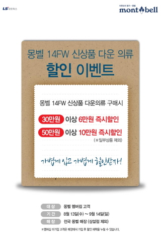 LS네트웍스의 아웃도어 브랜드 몽벨이 2014 F/W 시즌 신상품 다운의류 출시를 기념하여 이벤트를 펼친다.