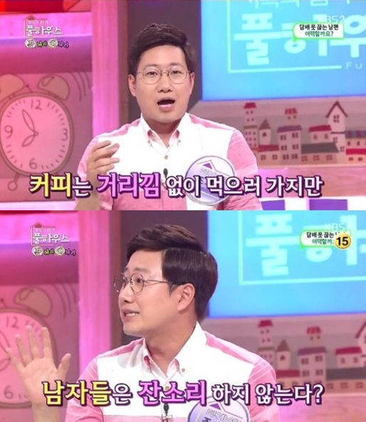 조우종은 “여성들이 드라마와 커피에 엄청나게 중독돼있다”며 말을 시작했다. 그는 “커피 마시러 가는 건 아무 죄의식이 없지만 담배 피는 사람들은 그렇지 않다”며 “남녀가 함께 카페에 가면 남자들이 담배 피러 뛰어갔다 올 때 여자들은 여유롭게 커피를 음미하고 있다”고 불평했다.
