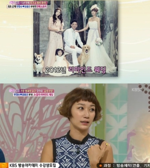 변정수는 22일 방송된 KBS 2TV ‘여유만만’에 출연해 “감상선암 판정을 받은 뒤 인생의 마지막 순간을 기록하기 위해 리마인드 웨딩을 올렸다”고 고백했다.