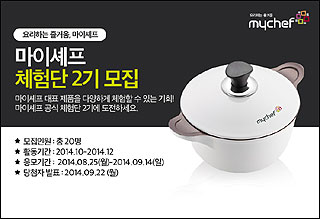 이번에 체험단으로 선발되는 주부 20명은 향후 약 3개월간 마이셰프 브랜드의 프라이팬, 냄비, 식도, 가위 등 전 라인의 제품을 체험한 뒤 실제 제품을 사용하며 느낀 경험을 소비자들에게 전달하는 역할을 맡는다.