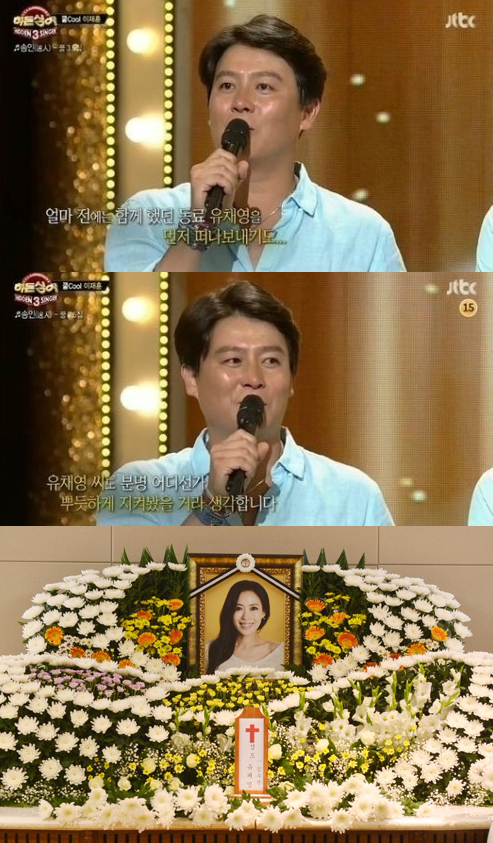 이재훈은 “가장 최근에 너무 안타깝게 같이 결성해서 함께 했던 유채영씨가 하늘나라로 갔다”며 “유채영씨도 아마 좋은 곳에서 이 모습을 뿌듯하게 지켜봤을 거라 생각한다”고 말했다. 그의 눈에는 눈물이 글썽였다. 같은 그룹 멤버인 김성수는 안타까운 표정으로 고개를 숙였다. 지켜보던 신지(코요태)도 눈물을 보였다.