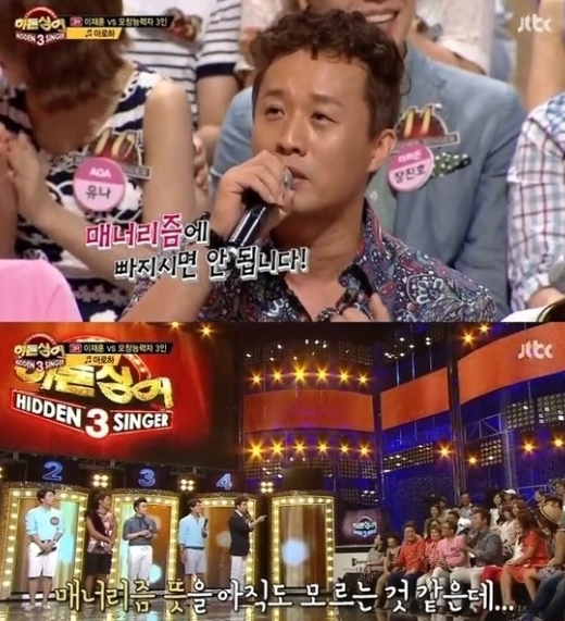 30일 방송된 jtbc ‘히든싱어3’는 혼성그룹 쿨의 멤버 이재훈이 출연해 모창 도전자들과 대결을 펼쳤다. 정준하는 패널로 출연해 ‘목소리만 듣고 진짜 이재훈 찾기’에 동참했다.