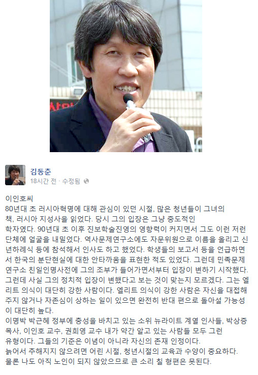 김동춘 성공회대 사회과학부 교수가 이인호 KBS 신임 이사장이 중도적인 학자에서 변절한 이유를 분석한 글을 4일 밤 페이스북에 올려 눈길을 끌고 있습니다.