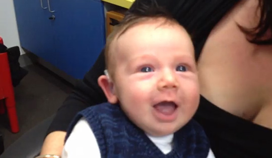 1분 26초짜리 영상의 내용은 별 것 아닙니다. 선천성 청력 손실을 안고 태어난 라크란에게 보청기를 끼워주는 내용이에요. 이물감 때문인지 보청기에 칭얼대던 라크란은 엄마 아빠의 목소리에 함박웃음을 짓는 등 경이로운 표정을 보입니다.
