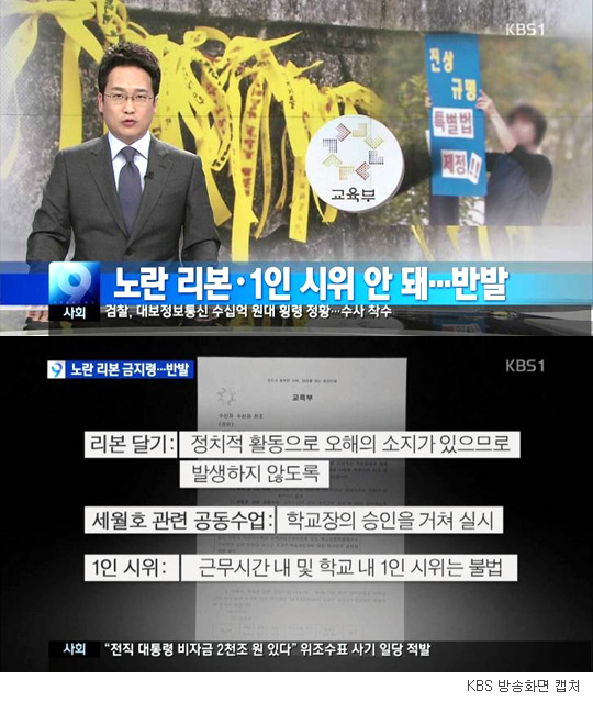 예를 들어 리본 달기는 정치활동으로 오해될 수 있으니 불가하고, 세월호 관련 수업은 학교장 승인이 있었는지 확인하라는 것 등입니다. 또 1인 시위는 근무시간에 학교 내에서는 불법이라고 못박았습니다. 이밖에도 공동수업을 하거나 점심 단식 등도 금지하라는 내용이 있습니다.