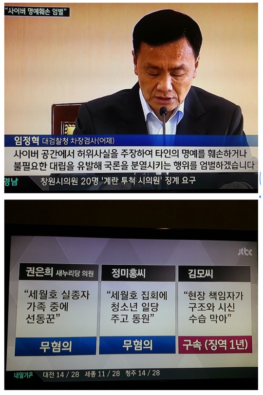 또 네티즌들은 검찰의 발표 시점에 불쾌감을 느끼고 있습니다. 박근혜 대통령이 지난 16일 국무회의에서 “사이버상의 아니면 말고식의 폭로성 발언이 도를 넘고 있어 사회의 분열을 가져오고 있다”고 발언한 지 이틀 만에 검찰이 이런 발표를 했다는 것이죠.