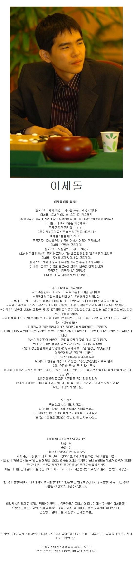 -한국 기사 중 가장 두려운 기사가 있다면? 이세돌 9단이다.(구리 9단)
