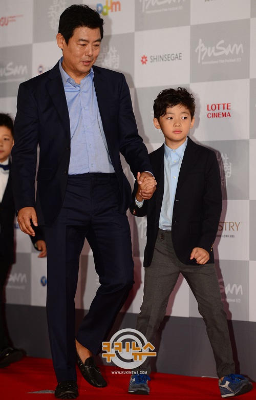 배우 성동일과 아들 성준이 2일 오후 부산 해운대구 우동 영화의 전당에서 열린 제19회 부산국제영화제(BIFF) 개막식에 참석해 포즈를 취하고 있다.