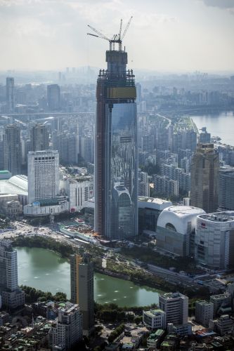 제2롯데월드 실내에서 협력업체 직원이 금속제 낙하물에 맞아 다치는 사고가 발생했다.