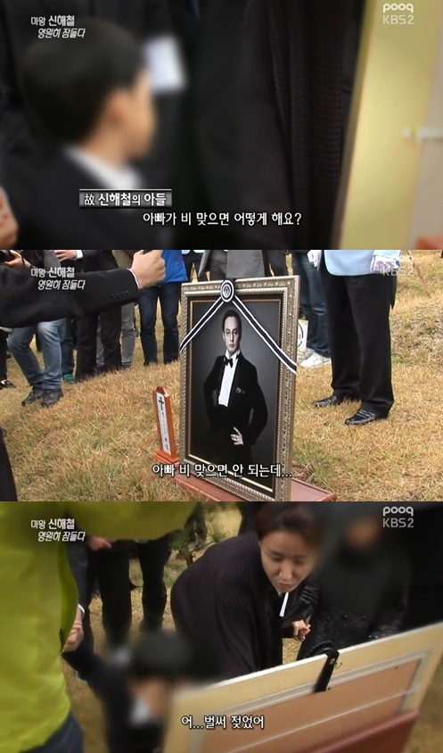 아들 신모군의 모습은 1일 방송된 KBS 2TV ‘연예가중계’를 통해 전해졌다. 방송에는 지난달 31일 치러진 발인식과 이어 찾은 추모공원에서 애통해 하는 유족과 지인들 모습이 담겼다.