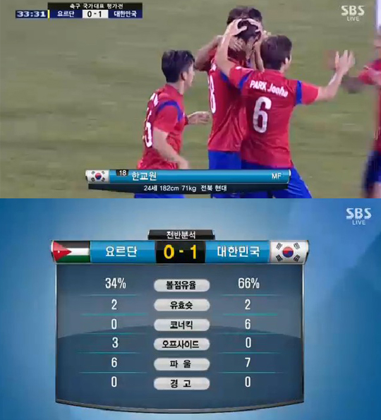 14일(한국시간) 요르단 암만의 킹 압둘라 국제 경기장에서 열린 경기에서 전반 33분 한교원이 첫 골을 성공시켰다. 오른쪽 측면에서 날아온 차두리의 크로스를 받아 골로 연결했다. 한교원의 선제골로 한국 축구대표팀은 1대 0으로 앞서가고 있다. 축구 팬들은 전반전을 어떻게 봤을까.