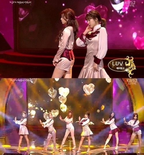 에이핑크는 21일 서울 여의도 KBS홀에서 열린 대종상 시상식에서 게스트로 무대에 섰다. 행사 중간 진행된 축하무대에서 새 앨범 타이틀곡 ‘러브’를 선보였다. 노래는 KBS2 ‘뮤직뱅크’에서 컴백한 뒤 갖는 첫 무대였다. 팬이 아니고선 노래를 아는 이는 많지 않았다.