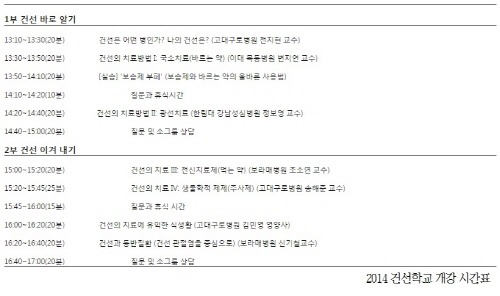 이 밖에도 건선 치료에 유익한 식생활의 방법과 건선환자에게 병발이 우려되는 건선 관절염에 대한 이해와 대비를 위한 강의도 준비되어 있다.