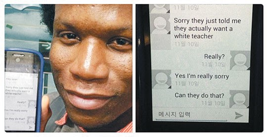 알자지라 더스트림은 최근 오클라호마 출신 션 존스(30)가 백인이 아니라는 이유로 서울의 한 학원 교사 채용에서 떨어졌다는 내용을 보도했습니다. 채용 중개인은 존스에게 “미안하지만 그쪽에서 사실상 백인 교사를 원한다”고 문자를 통해 알렸습니다. 며칠 뒤 그는 다른 채용 과정에서도 비슷한 메시지를 받고 거절당했습니다. 존스는 2년 이상의 강사 경력과 외국어 영어 교육 자격증 테플(TEFL)을 가지고 있는데도 피부색이 검다는 이유로 면접조차 보지 못하는 불이익을 당한 겁니다.