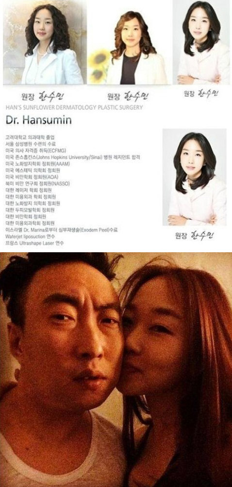 7일 인터넷에는 피부과 의사인 한수민씨가 운영하는 병원 홈페이지 소개 페이지 캡처 사진이 화제가 됐다. 전날 남편 박명수가 출연한 MBC 예능 프로그램 ‘무한도전’에서 한씨가 언급되면서 덩달아 주목을 끈 것이다.