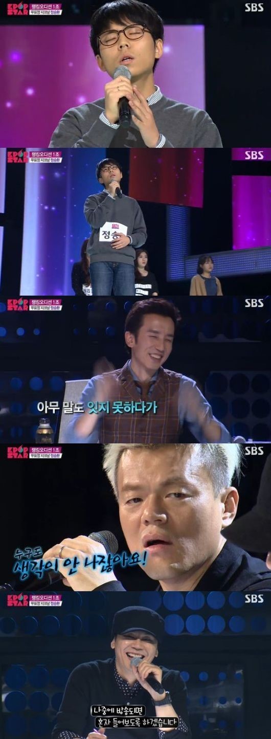정승환은 7일 방송된 SBS 예능프로그램 ‘일요일이 좋다-K팝스타4’은 본선 2라운드로 1조 감성보컬조의 무대가 펼쳐졌다. 1라운드 합격자들은 YG, JYP, 안테나 뮤직에서 각각 사전 트레이닝을 받고 무대에 올랐다.