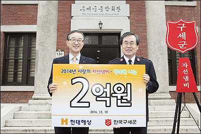 한편 현대해상은 2008년부터 구세군에 지속적으로 성금을 기부해 오고 있다. 2011년에는 구세군의 고액 기부자 클럽인 ‘BEST DONOR CLUB(베스트 도너 클럽)’에 가입됐으며, 2012년에는‘아름다운 기업상’을 수상한 바 있다. 박주호 기자 epi0212@kmib.co.kr