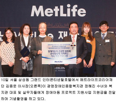메트라이프코리아재단은 장애아동 프로젝트 지원사업을 위해 선정된 사회복지기관에 지원금을 전달했다고 10일 밝혔다.