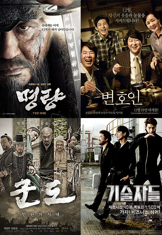 2014년 극장가는 그야말로 남자배우들이 장악했다. 개봉한 영화들 자체가 남자배우 위주의 작품들이 많았다. ‘1760만’ 최고 흥행 기록을 세운 ‘명량’부터 그랬다. 최민식을 중심으로 류승룡, 조진웅 등이 포진했다. 이정현이 홍일점이었다. ‘변호인’에서는 송강호와 임시완 연기가 주목을 받았다.