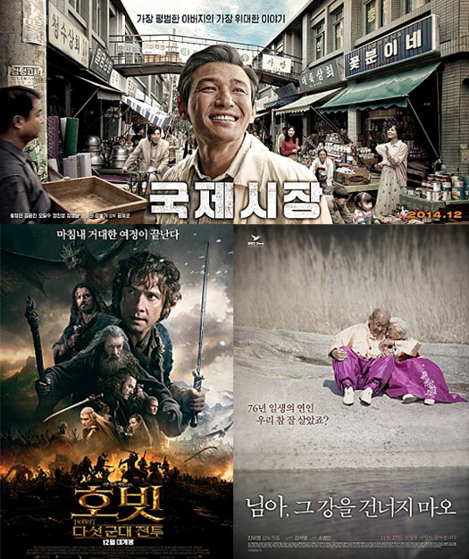 ‘반지의 제왕’ ‘호빗’ 시리즈의 마지막 편인 피터 잭슨 감독의 ‘호빗: 다섯 군대 전투’는 전국 926개 상영관에서 97만7041명(32.7%)을 모아 2위를 차지했다. 누적관객수는 132만469명을 기록했다.
