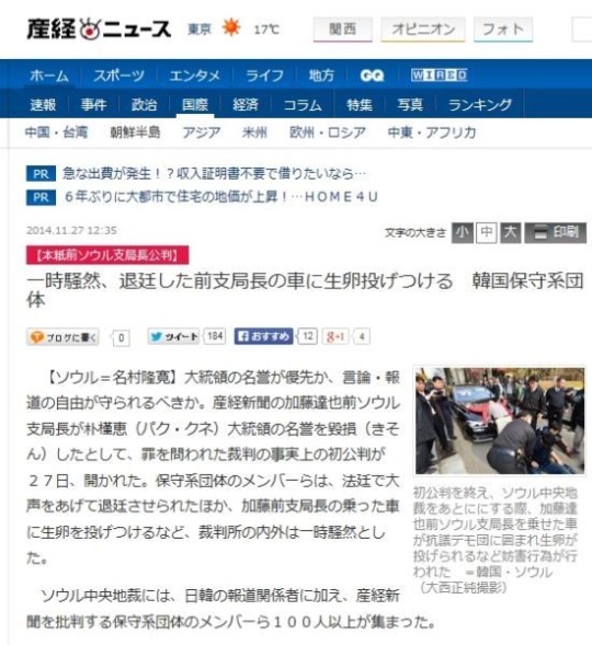 가토 전 지국장은 지난달 27일 서초구 서울중앙지방법원에서 공판을 마치고 변호인과 함께 법무법인 소유 차량을 타고 돌아가던 중 보수단체 회원들이 차량을 둘러싸고 감금, 협박했다며 이달 1일 고소했다.