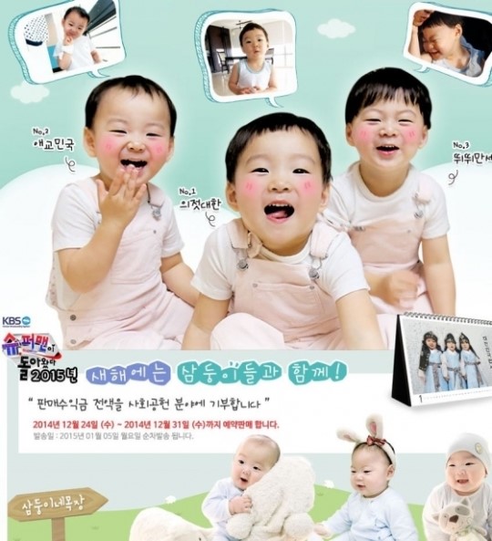 관계자는 “당초 송일국씨는 지인들에게 연하장 개념으로 삼둥이의 모습을 담은 달력을 제작해 선물하려했으나 시청자들의 관심이 많아 시청자 판매용을 제작하게 됐다”고 설명했다.