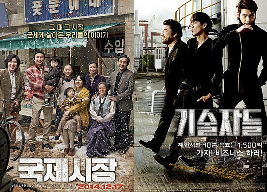 ‘기술자들’은 명석한 두뇌를 가진 금고털이 지혁(김우빈)이 인력조달 능력자 구인(고창석)과 최고 해커 종배(이현우)와 팀을 이뤄 인천세관에 숨겨진 검은 돈 1500억원을 훔치는 과정을 속도감 있게 그렸다. ‘국제시장’은 6·25전쟁으로 아버지를 잃고 가장이 된 덕수(황정민)가 가족의 생계를 위해 평생을 바쳐 헌신하며 살아가는 이야기를 담았다.