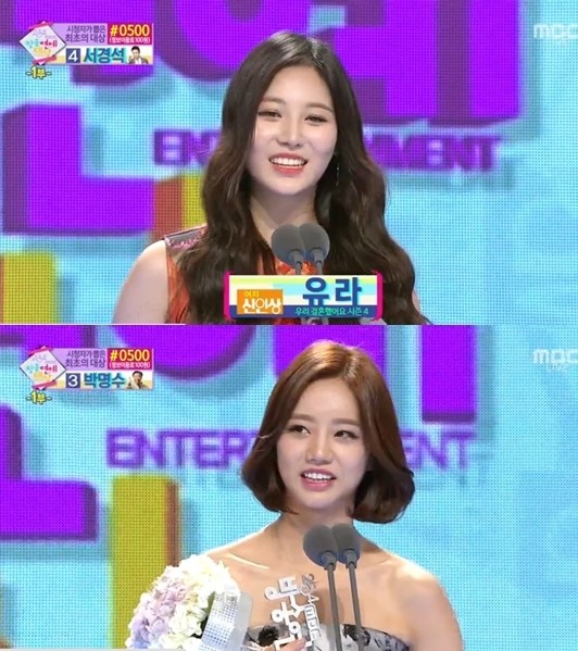유라와 혜리는 29일 서울 마포구 상암동 MBC공개홀에서 열린 방송연예대상 시상식에서 버라이어티 부문 여자 신인상을 받았다.