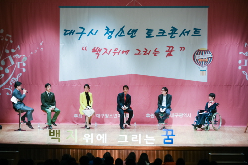 대구광역시가 후원하고 대구청소년지원재단이 함께 한 ‘청소년과의 토크콘서트’가 지난 29일 오후 대구광역시청소년수련원 대강당에서 열렸다고 30일 밝혔다. 콘서트에는 청소년 1000여명이 참석했다.