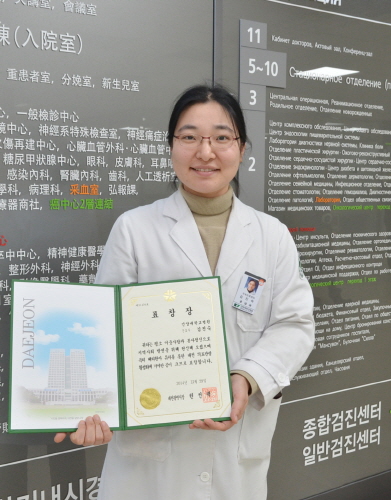 건양대병원 국제진료센터에 근무하는 김진숙 간호사(39세)가 지난 29일 의료관광 활성화 유공자로 선정돼 대전시장상을 수상했다.