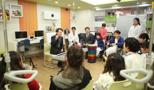 또한, 교육청 관계자들은 병원학교에서 진행 중인 음악치료수업에 참관해 아픈 몸으로도 학업에 열중하는 환아들을 독려했다.